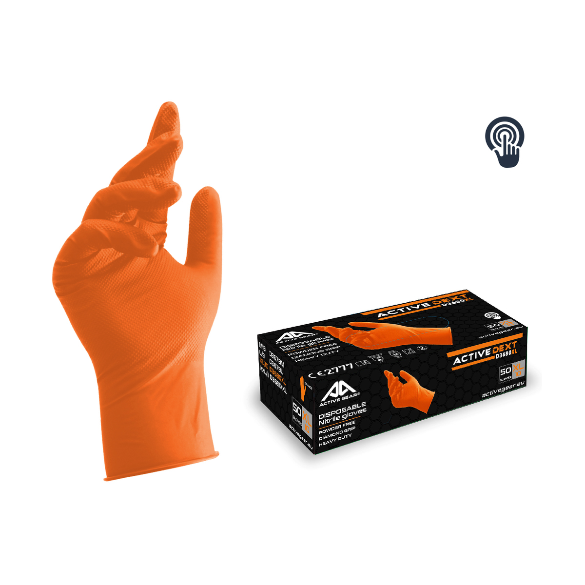Γάντια μιας χρήσης nitrile πορτοκαλί συνεργείου πάχος 0.18mm Dext 11/XXL (κουτί των 50τεμ.) D3681