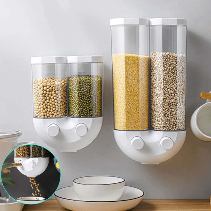 Διανεμητής με 2 διάφανα δοχεία για την τοποθέτηση δημητριακών, ξηρών καρπών, όσπριων κ.α.