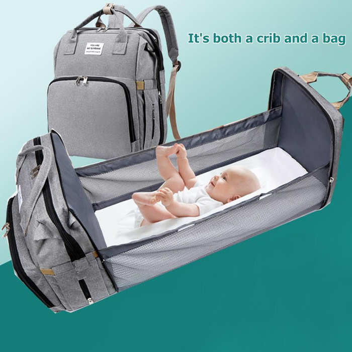 Τσάντα πλάτης που μετατρέπεται σε παιδικό κρεβατάκι. Είναι κατασκευασμένη από υψηλής ποιότητας υλικά και αδιάβροχη. Διαθέτει πολλαπλούς χώρους αποθήκευσης μέσα στους οποίους μπορούν να αποθηκευθούν ρούχα, πάνες, πετσέτες, μπιμπερό με γάλα κ.α. Επιπλέον ο εργονομικός σχεδιασμός καθιστά την τσάντα εύκολη και άνετη στην μεταφορά της.
