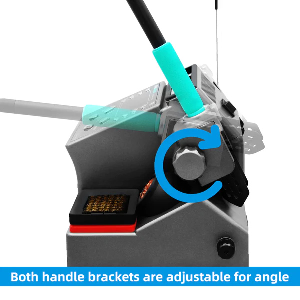 Οι περιστρεφόμενες βάσεις κολλητηριών προσφέρουν άνετη και εργονομική εμπειρία χρήσης, ενώ οι έξτρα μύτες συγκόλλησης και τα σφουγγάρια καθαρισμού μύτης κολλητηριού που συμπεριλαμβάνονται επιτρέπουν την απρόσκοπτη εκτέλεση των εργασιών σου με ακρίβεια και αξιοπιστία.