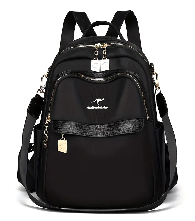 Τσάντα πλάτης με μοντέρνο design, σε μαύρο χρώμα. Διαθέτει πολλές εσωτερικές και εξωτερικές τσέπες, για να τοποθετήσετε τα προσωπικά σας αντικείμενα.