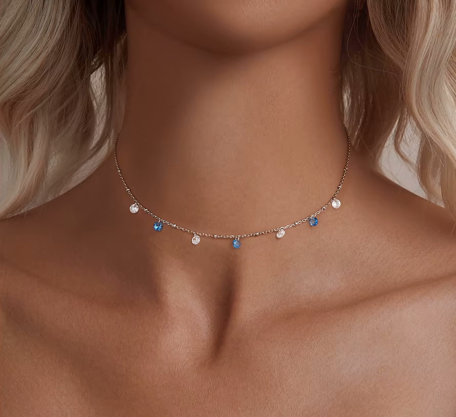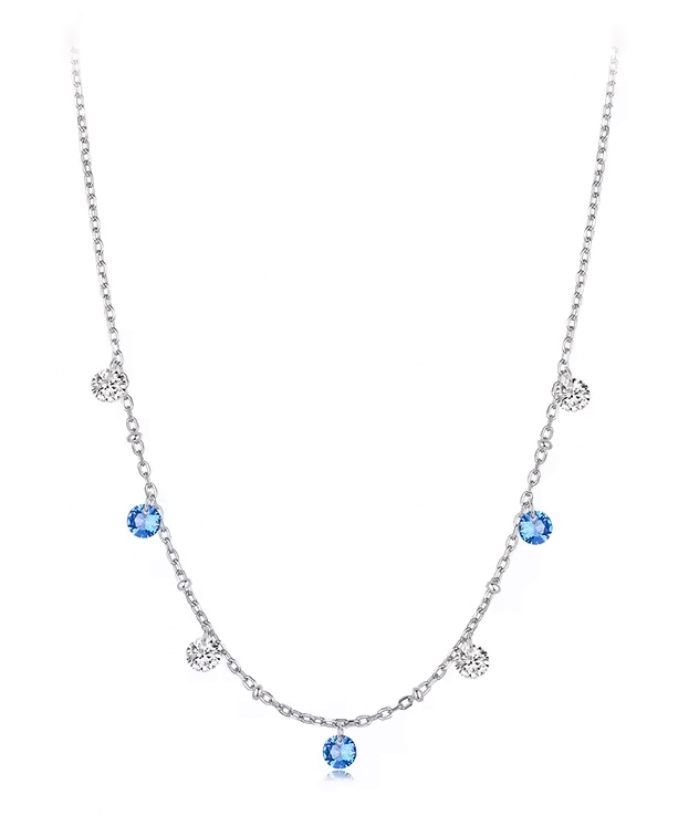 Εντυπωσιακό κολιέ Bamoer, με ιδιαίτερο και μοναδικό design. Διαθέτει ασημί αλυσίδα, διακοσμημένη με κυβική ζιρκόνια, λευκού και μπλε χρώματος.