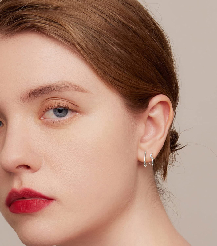 BAMOER σκουλαρίκια διπλοί κρίκοι SCE1480, κυβική ζιρκόνια, ασήμι 925