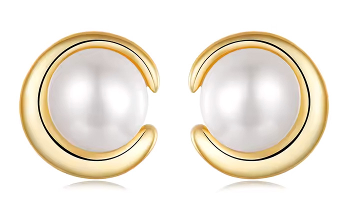 BAMOER σκουλαρίκια καρφωτά BSE1107 με λευκή πέρλα, ασήμι 925, χρυσό