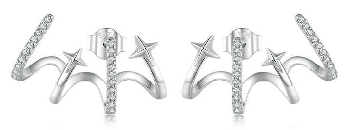 Ιδιαίτερα σκουλαρίκια, επιπλατινωμένα, διακοσμημένα με κυβική ζιρκόνια λευκού χρώματος, τα οποία στερεώνονται στον λοβό του αυτιού και επεκτείνονται προς τα πάνω, δημιουργώντας ένα εντυπωσιακό εφέ.