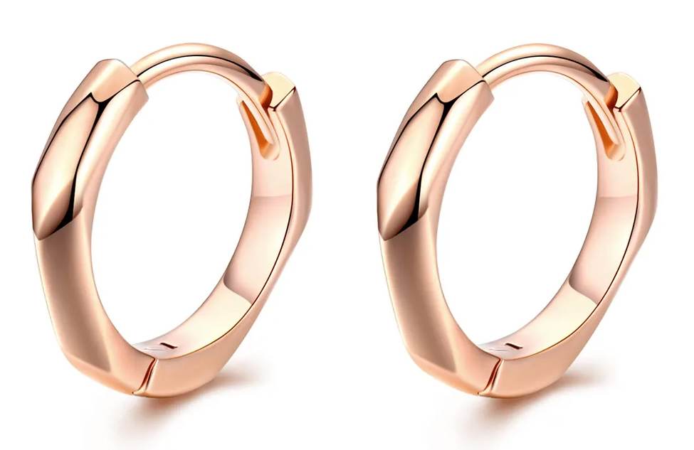 Μοντέρνα σκουλαρίκια Bamoer, σε πολύγωνο σχήμα με στρογγυλεμένες γωνίες, κατασκευασμένα από ασήμι 925, σε ροζ χρυσό χρώμα.