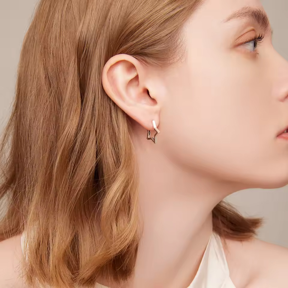 Μοντέρνα σκουλαρίκια καρφωτά Bamoer με σχήμα αστεριού, κατασκευασμένα από οξειδωμένο ασήμι 925.