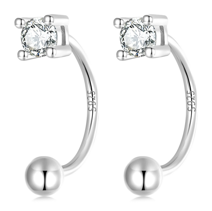 Εντυπωσιακά σκουλαρίκια μπάρα Bamoer, κατασκευασμένα από ασήμι 925, επιπλατινωμένα και διακοσμημένα με αστραφτερή κυβική ζιρκόνια λευκού χρώματος. Διαθέτουν βιδωτό κούμπωμα και είναι κατάλληλα για piercing.