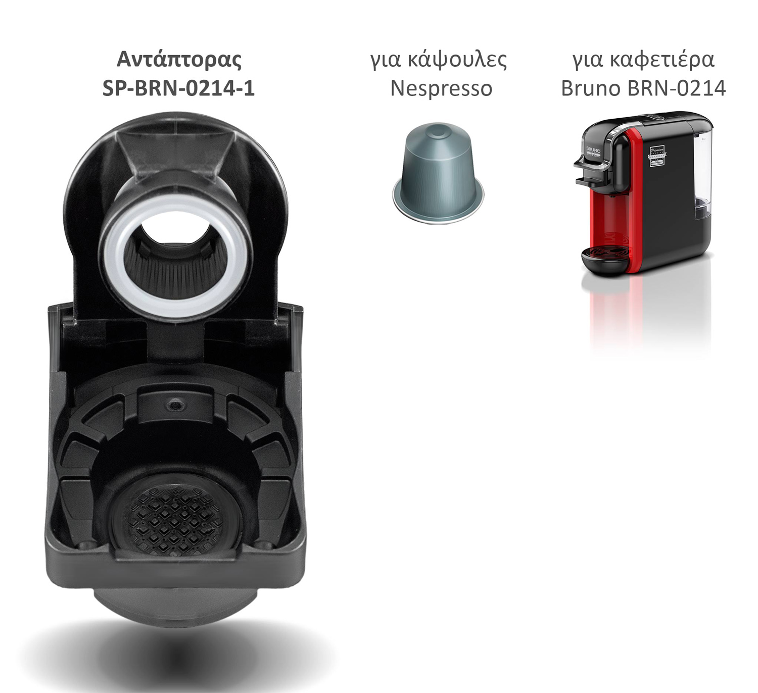 Ανταλλακτικός αντάπτορας για κάψουλες Nespresso για την καφετιέρα espresso BRN-0214 της Bruno.