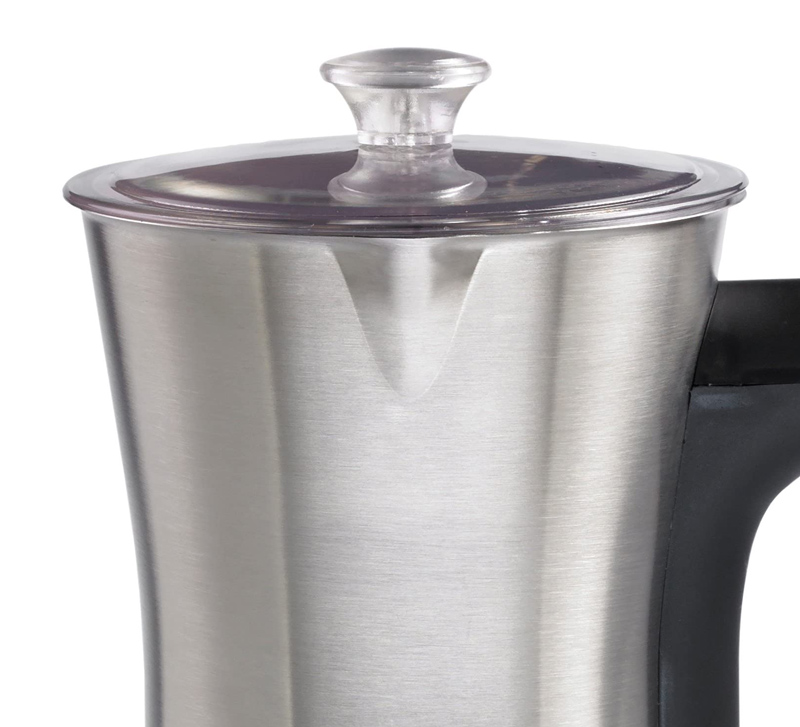 Με το καπάκι επιτυγχάνεται ταχύτερος βρασμός, ενώ προσφέρει την δυνατότητα να βλέπετε το περιεχόμενο του μπρικιού. Είναι κατασκευασμένο από πλαστικό, επομένως, δεν θερμαίνεται εύκολα και μπορείτε να το αφαιρείτε με ασφάλεια.