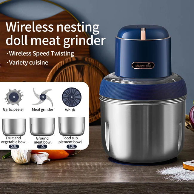 DEERMA πολυκόπτης JR08, επαναφορτιζόμενος , 3x δοχεία, 220W, μπλε