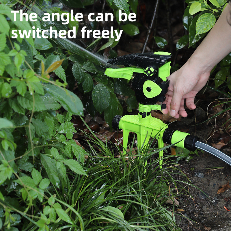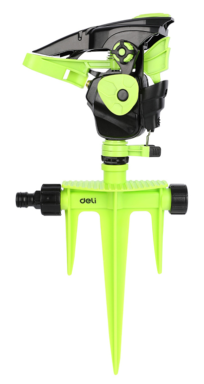 Διαθέτει καρφωτή βάση για εύκολη και σταθερή τοποθέτηση στο έδαφος και δυνατότητα 360° ρύθμισης γωνίας ρίψης, καλύπτοντας ομοιόμορφα μεγάλες επιφάνειες.