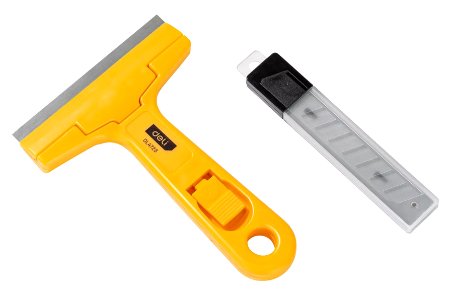 DELI ξύστρα χειρός DL4723 με ανταλλακτικές λάμες, 100mm, κίτρινη