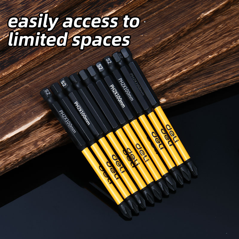 DELI σετ μύτες κατσαβιδιού DL251100 για δράπανο, σταυρωτές, PH2x100mm, 10τμχ