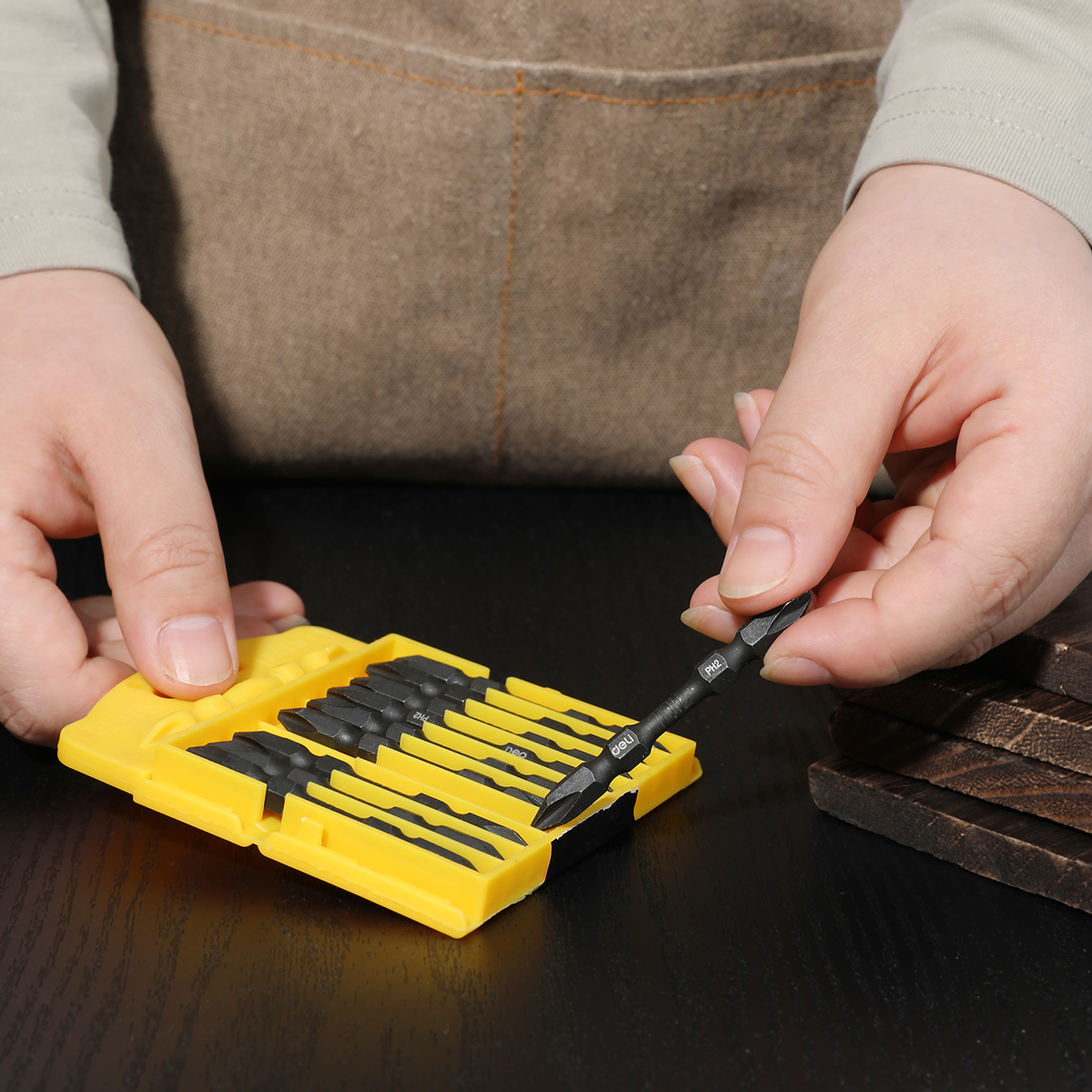 Σετ μύτες κατσαβιδιού της Deli για χρήση με δράπανο ή ηλεκτρικό κατσαβίδι. Η συσκευασία περιλαμβάνει 10 μύτες.