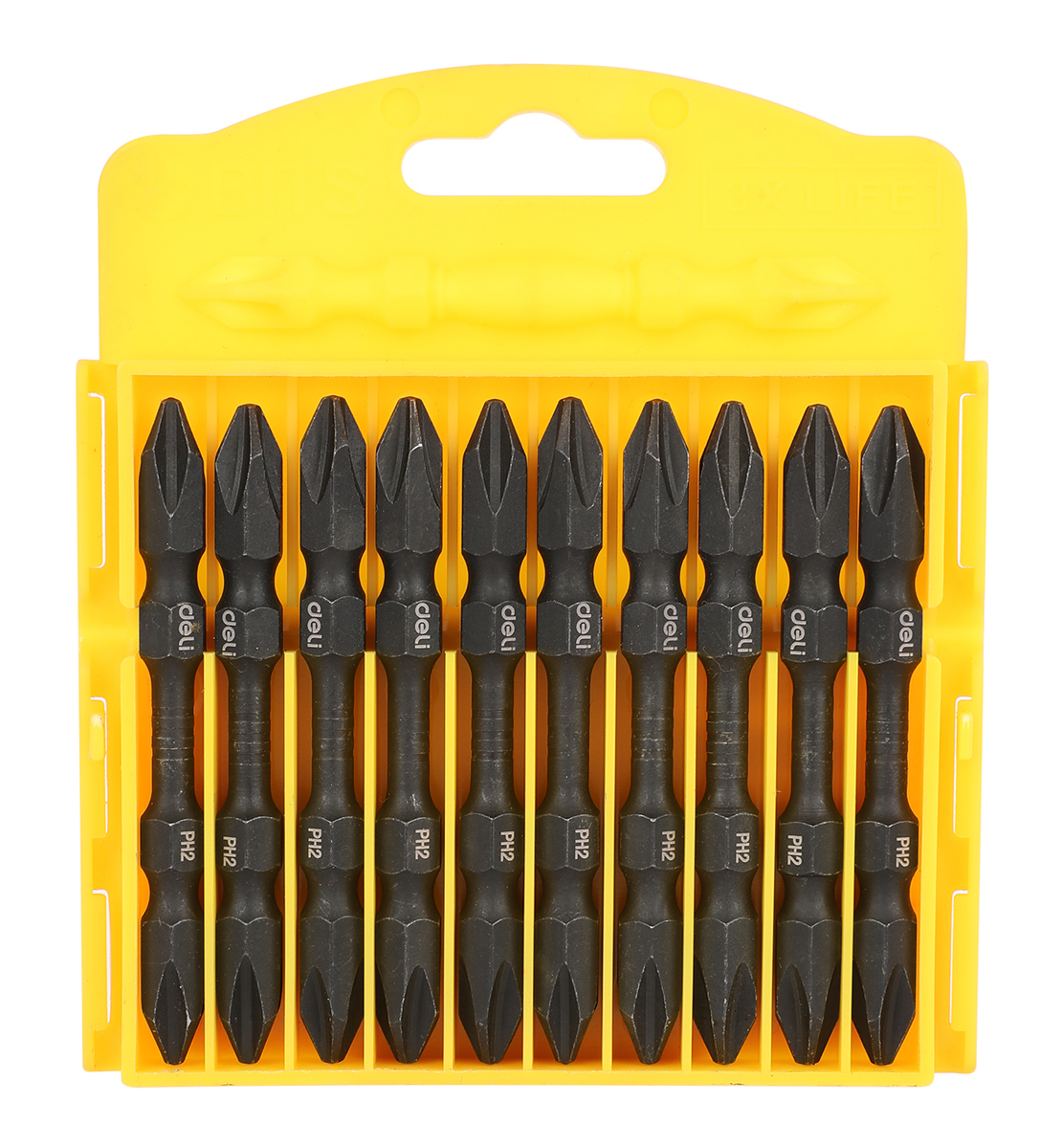 DELI σετ μύτες κατσαβιδιού DL252202 για δραπανοκατσάβιδο, διπλή κεφαλή, σταυρωτές, PH2x65mm, 10τμχ