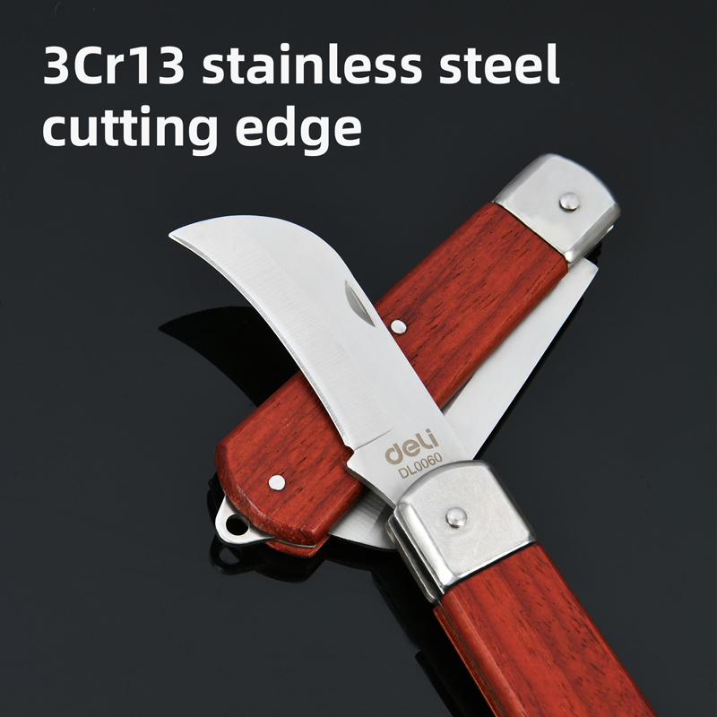 Σουγιάς της Deli με ανθεκτική λεπίδα από ανοξείδωτο ατσάλι και καλαίσθητη ξύλινη λαβή. Είναι ιδανικός για απογύμνωση καλωδίων αλλά και για γενική χρήση.