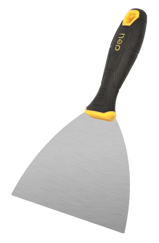 Σπάτουλα της DELI με ανθεκτική λάμα από ανοξείδωτο ατσάλι και άνετη αντιολισθητική λαβή. Είναι ιδανική για εργασίες στόκου, σοβά, αφαίρεσης βαφής και άλλες εφαρμογές.