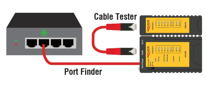 Tester καλωδίων της Delock για τον γρήγορο και εύκολο έλεγχο των καλωδίων δικτύου. Επιπλέον, διαθέτει λειτουργίες εύρεσης θύρας και flashlight.