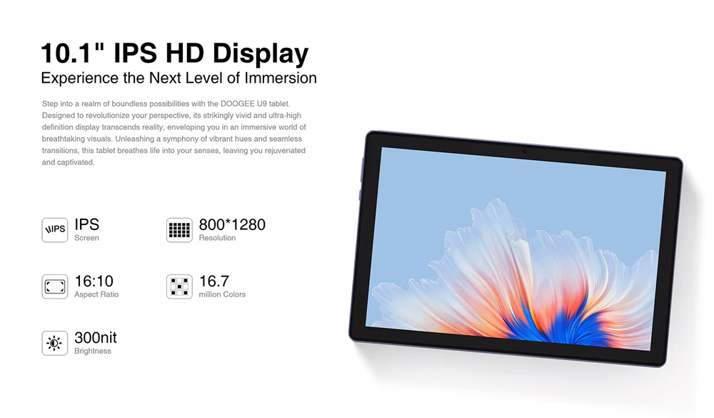 Αναβαθμίστε την εμπειρία σας στον κόσμο της τεχνολογίας με το tablet U10 της DOOGEE. Με εντυπωσιακή οθόνη 10.1″ HD, εξαιρετική απόδοση και πληθώρα λειτουργιών, το U9 σας προσφέρει απεριόριστες δυνατότητες.