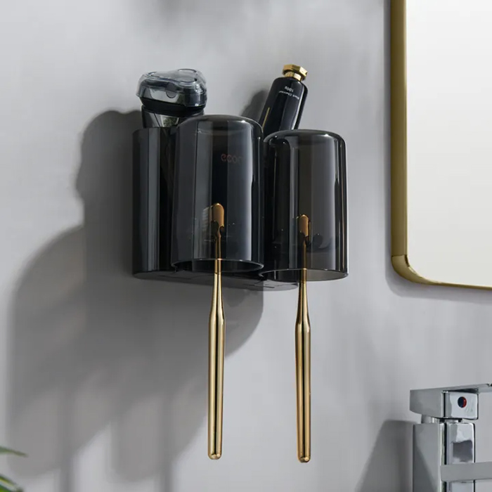 ECOCO βάση οδοντόβουρτσας E2229 με 2 ποτήρια, μαύρη-διάφανη
