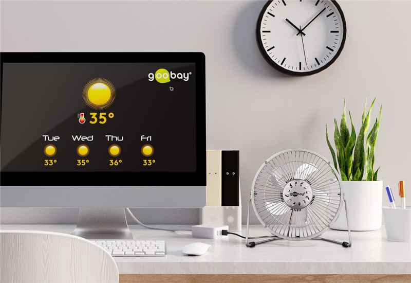 GOOBAY επιτραπέζιος ανεμιστήρας 62062, 8″, USB, ασημί