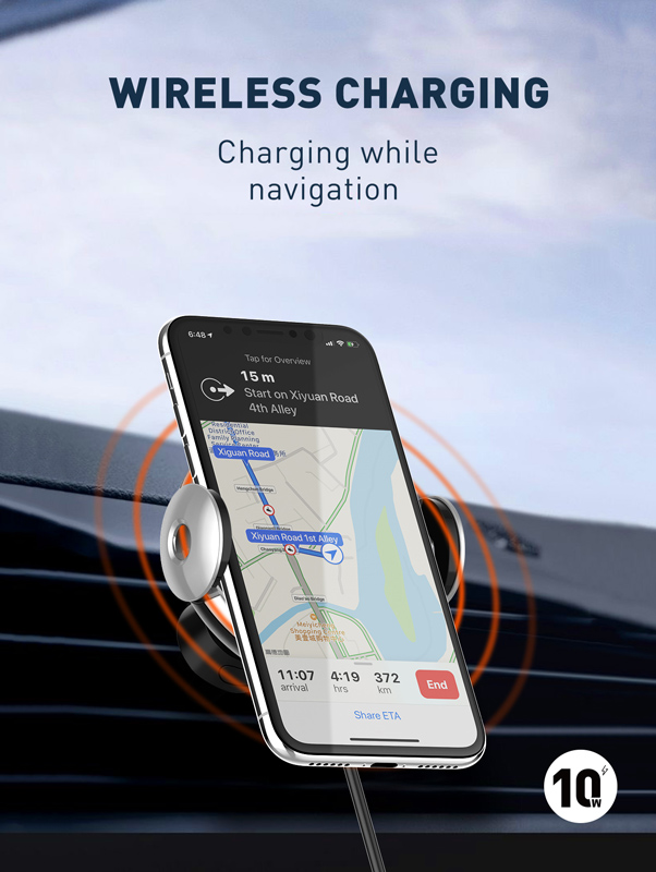 Συγκρατεί το smartphone σταθερό και ασφαλές με κλιπ συγκράτησης ενώ παράλληλα το φορτίζει ασύρματα με απόδοση έως 15W.
