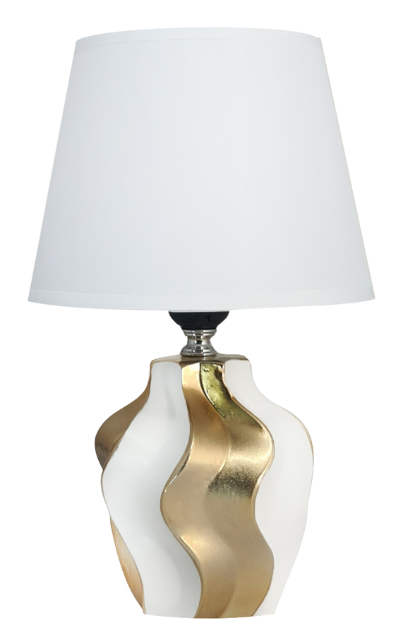 POWERTECH επιτραπέζιο φωτιστικό HLL-0135, E27 κεραμική βάση, λευκό/χρυσό