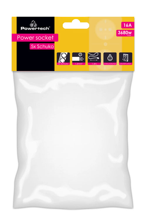 POWERTECH πολύπριζο ασφαλείας PT-1057, 5x schuko, 16A, 1.4m, λευκό