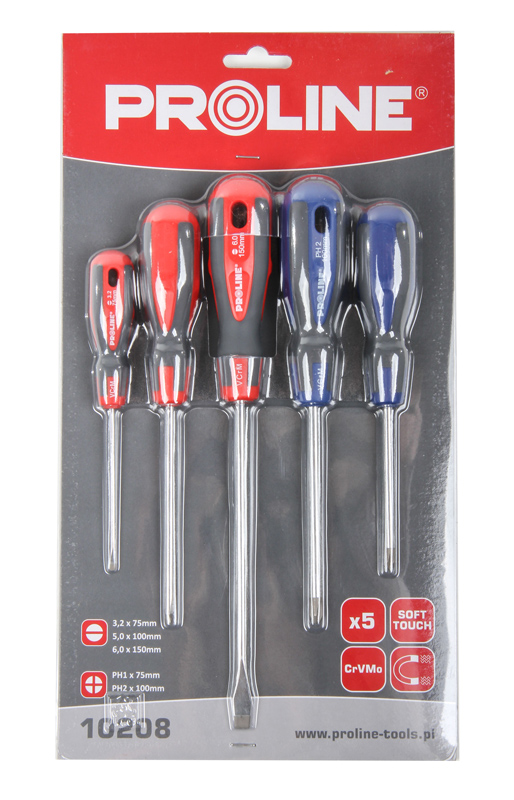 PROLINE σετ κατσαβίδια 10208, 3x ίσια & 2x σταυρωτά, μαγνητικά, 5τμχ