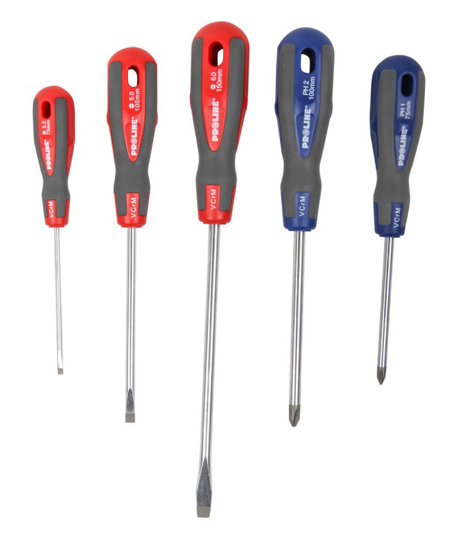 Σετ κατσαβιδιών από την Proline που αποτελείται από 3 ίσια κατσαβίδια και 2 σταυρωτά.