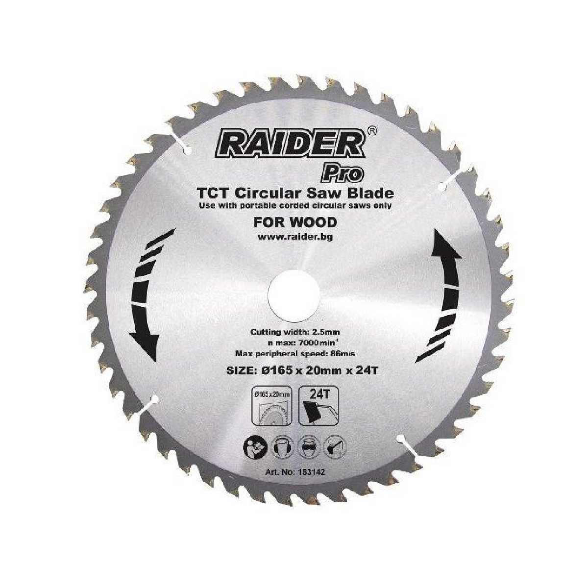 Ο δίσκος κοπής ξύλου της Raider με 60 δόντια (μοντέλο 163142) προσφέρει αποτελεσματική κοπή σε ξύλινες επιφάνειες.