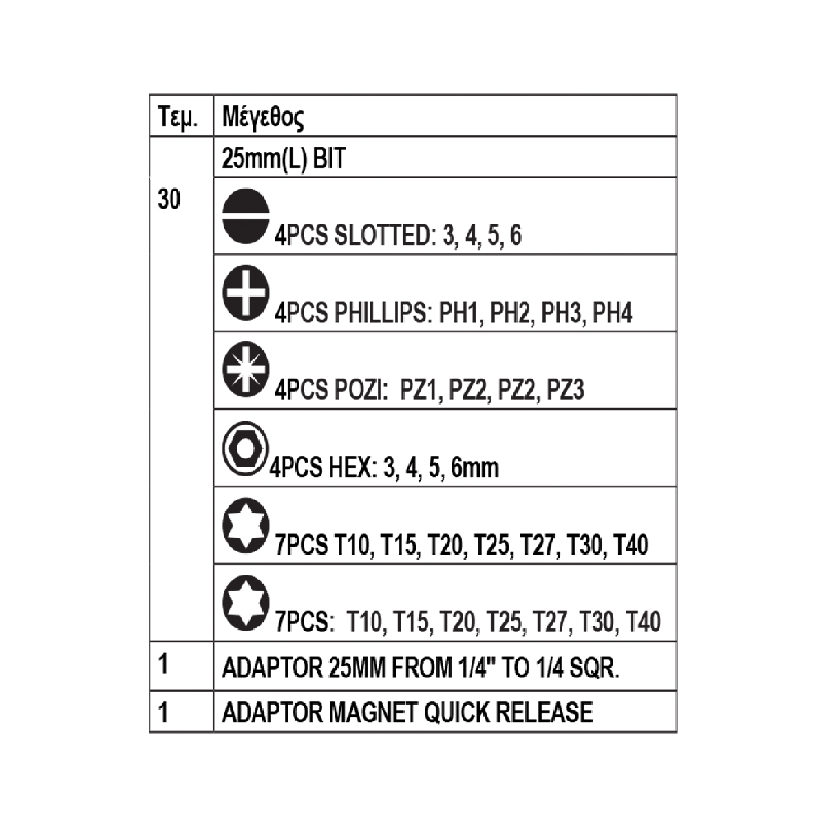 RAIDER Μύτες 1/4” σετ 32τεμ 158901