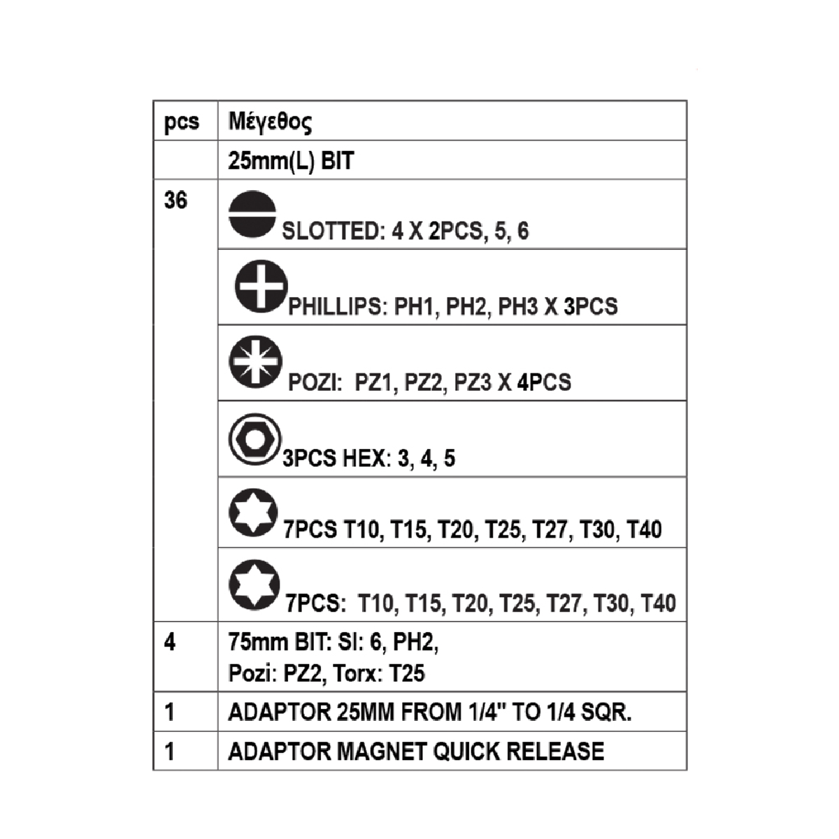 RAIDER Μύτες 1/4” σετ 42τεμ 158902