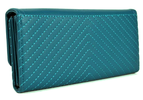 Κομψό, υψηλής ποιότητας γυναικείο πορτοφόλι σε μπλε χρώμα με χρυσές λεπτομέρειες. Διαθέτει πολλαπλές θέσεις στο εσωτερικό του για χαρτονομίσματα, θέση με φερμουάρ για ψιλά και 10 θέσεις για κάρτες.