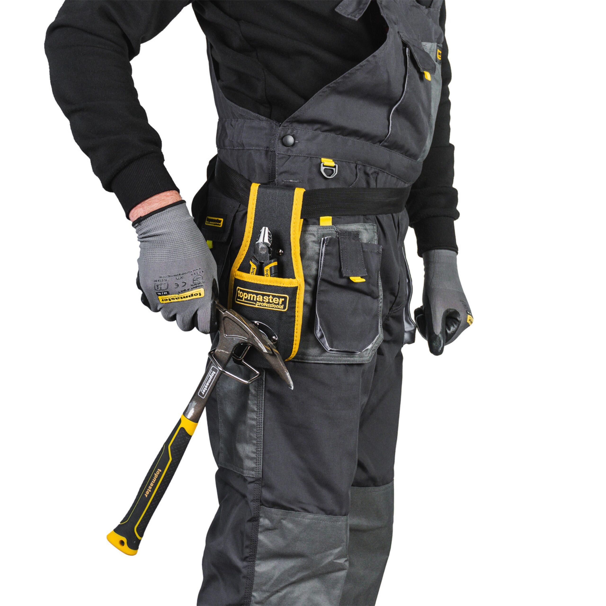 Η θήκη μέσης εργαλείων TOP MASTER 2 θέσεων με βάση στήριξης σφυριού είναι σχεδιασμένη για να προσφέρει άνεση και πρακτικότητα κατά τη διάρκεια της εργασίας. Η κατασκευή από ανθεκτικό πολυεστέρα την καθιστά κατάλληλη για απαιτητικές συνθήκες, ενώ η μεταλλική βάση παρέχει σταθερή και ασφαλή τοποθέτηση του σφυριού, χωρίς να διαταράσσεται η ισορροπία του χρήστη. Η θήκη εφαρμόζει εύκολα πάνω σε ζώνη, εξασφαλίζοντας άμεση πρόσβαση στα απαραίτητα εργαλεία ανά πάσα στιγμή.