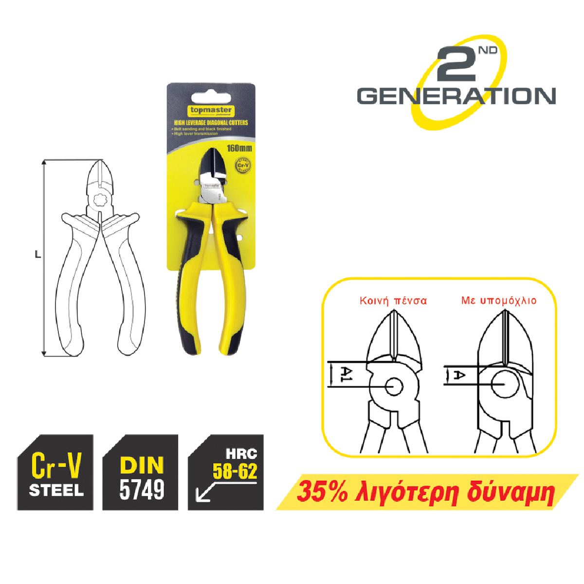 TOP MASTER Πλαγιοκόφτης με υπομόχλιο Cr-V 160mm 210166