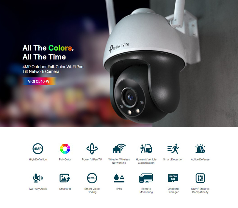 Δικτυακή κάμερα της TP-LINK με φακό 4mm και αισθητήρα ανάλυσης 4MP. Υποστηρίζει έγχρωμη νυχτερινή όραση, ασύρματη σύνδεση Wi-Fi, καταγραφή σε κάρτα micro SD (δεν συμπεριλαμβάνεται) και εξοπλίζεται με εσωτερικό μικρόφωνο και ηχείο για αμφίδρομη μεταφορά ήχου.