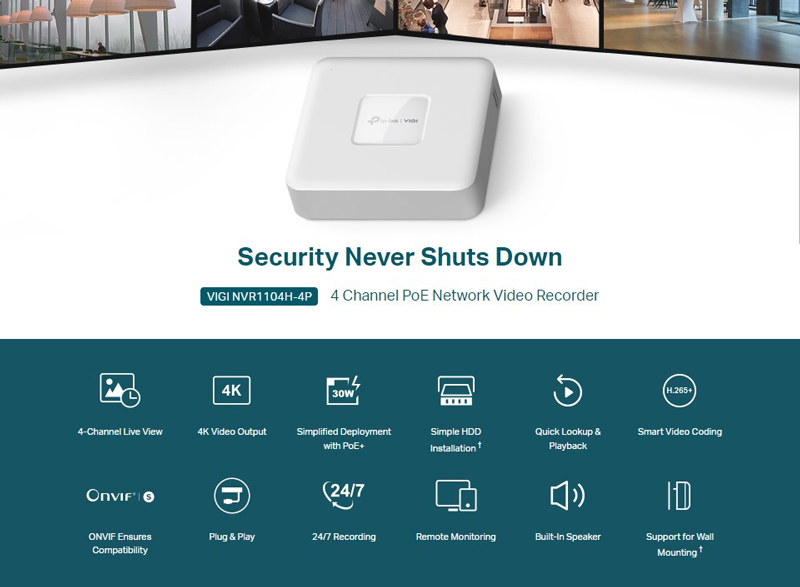 Τα καταγραφικά της σειράς VIGI από την TP-LINK συνδέονται με το σύστημα καμερών σας, επιτρέποντας της παρακολούθηση (live & playback) και την αποθήκευση των βίντεο που καταγράφονται.