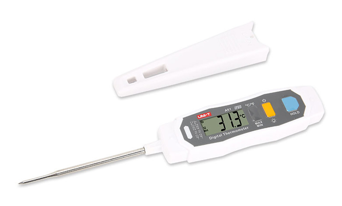 Το A61 είναι ένα θερμόμετρο με προστασία βαθμού IP65 και αισθητήρα από ανοξείδωτο ατσάλι με πιστοποίηση FDA. Είναι εξοπλισμένο με προστατευτικό κέλυφος για την αποφυγή τρυπήματος ή καψίματος του δέρματος.